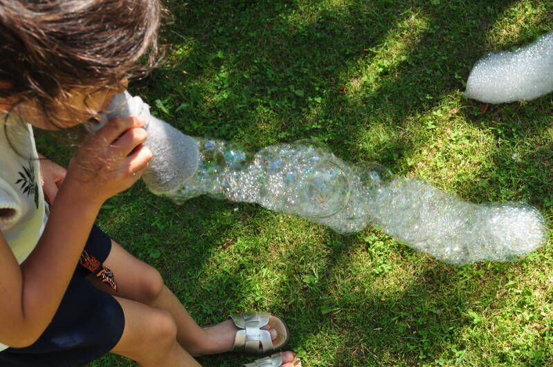 Ils aiment faire des bulles, alors quand Sylviane leur a fabriqué un appareil à bulles avec une chaussette et une bouteille en plastique🤔, ils se sont bien amusés.😂👍