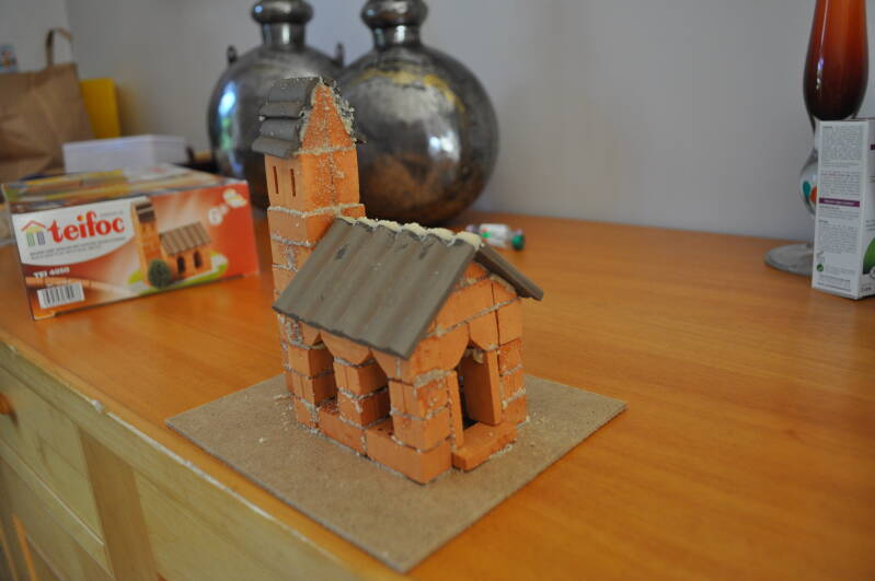 Un cadeau de noël à construire. On se met dessus avec Noah 😉 Préparation du mortier et réalisation d'une belle église 😂