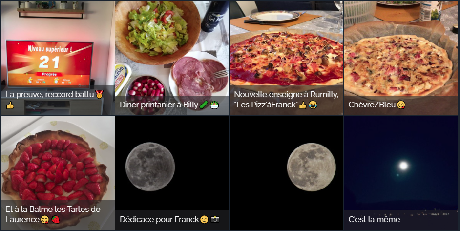 Petite dédicace pour Anne-So et Franck : mémère et moi, on veut bien venir goûter vos pizzas quand le confinement sera fini. Elles ont l'air bien bonnes et elles font envie !