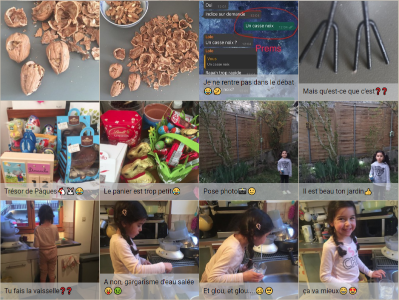 7h30 je me lève...pour trouver ma fille debout dans le couloir, immobile, les yeux dilatés, un sourire presque fou jusqu'aux oreilles, 2 paniers à la main. Elle est silencieuse, je lui chuchote qu'est-ce que tu fais là ? Elle ne répond pas et se contente de soulever les paniers. J'entends un léger cliquetis et lui demande de retirer ce qui fait du bruit dans son panier. Elle me montre le porte clé accroché à 1 et, toujours en chuchotant, m'explique que c'est pour reconnaître son panier de celui de Noah. Je suis en train de réfléchir à une astuce pour m'esquiver dans le jardin sans qu'elle ne veuille venir avec moi (je n'ai pas encore fait passer les cloches) lorsqu'elle met un doigt sur ses lèvres et me chuchote, toujours avec un grand sourire : je vais me coucher un moment avec Papa. Quand pragmatisme et innocence se mélangent 😅😍. Joyeuses Pâques 🐇🥚💕😘
